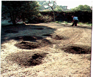 4- تهوية التربة باستخدام جهاز التهوية ذو الاصابع المعدنية المفرغة.