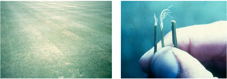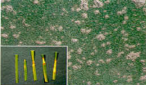 تلعب الفطريات والبكتريا والفيروسات والنيماتودا دورا في ظهور بعض الاعراض المرضية في صورة تبقعات وتلون لأجزاء من المسطح. ومن اشهر الامراض بقعة الدولارDollar spot ويظهر في صورة بقع لونها بني فاتح تحيط بالأوراق